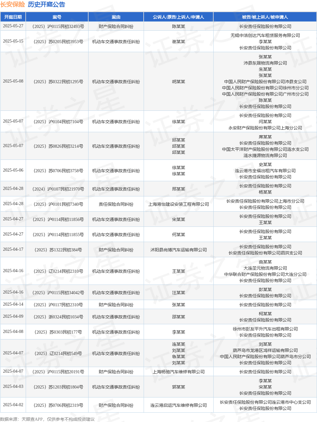 本站消息,根据天眼查APP显示,近日公布了一则长安责任保险股份有限公司作为被告/被上诉人的开庭公告,详细内容如下: